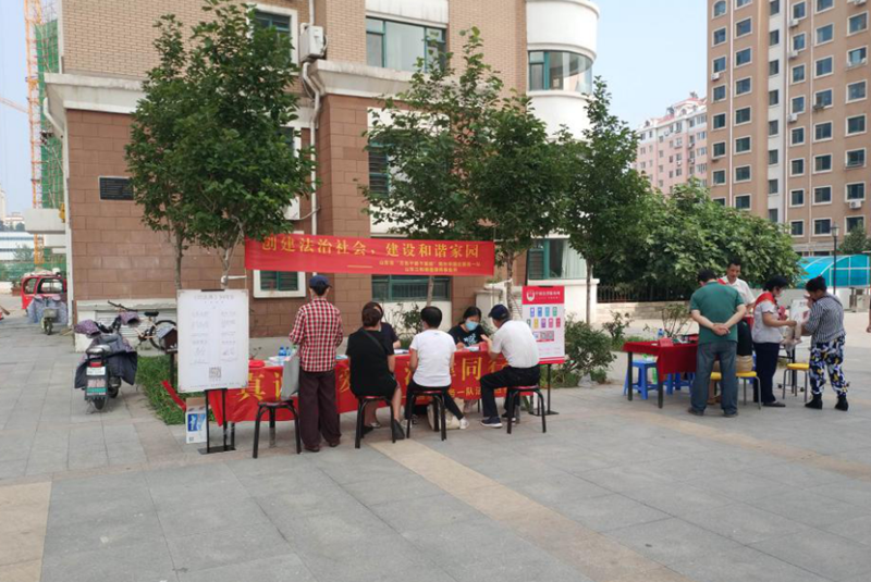 7月16日下午,青海天麒置业有限公司党委、市国企服务一队联合到芝罘区世学路社区开展了一场“真诚关爱、法律同行”民法典普及与理财咨询服务的“双报到”活动。